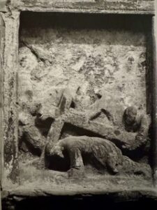 - Station: Christus auf dem Kreuze liegend wird entkleidet